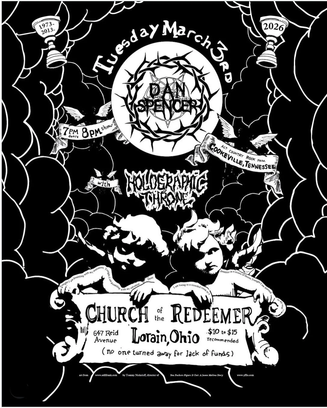 Dan Spencer is a singer songwriter from TN who plays dark country rock with a punk spirit and black metal imagery and lyricism. Spencer has shared bills with acts like Eddie Vedder and Post Malone, even touring with the latter. He will be making a stop in Lorain, playing at Church of the Redeemer, an incredibly unique space in the heart of Downtown.